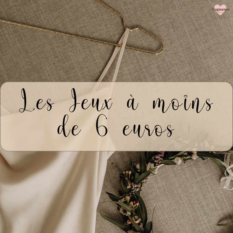Découvrez notre sélection de jeux de mariage à moins de 6€, conçus pour apporter une touche de divertissement inoubliable à votre journée spéciale. Chez Voguance, nous comprenons l'importance de rendre chaque instant de votre mariage inoubliable, même sans exploser votre budget.